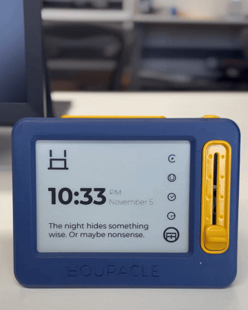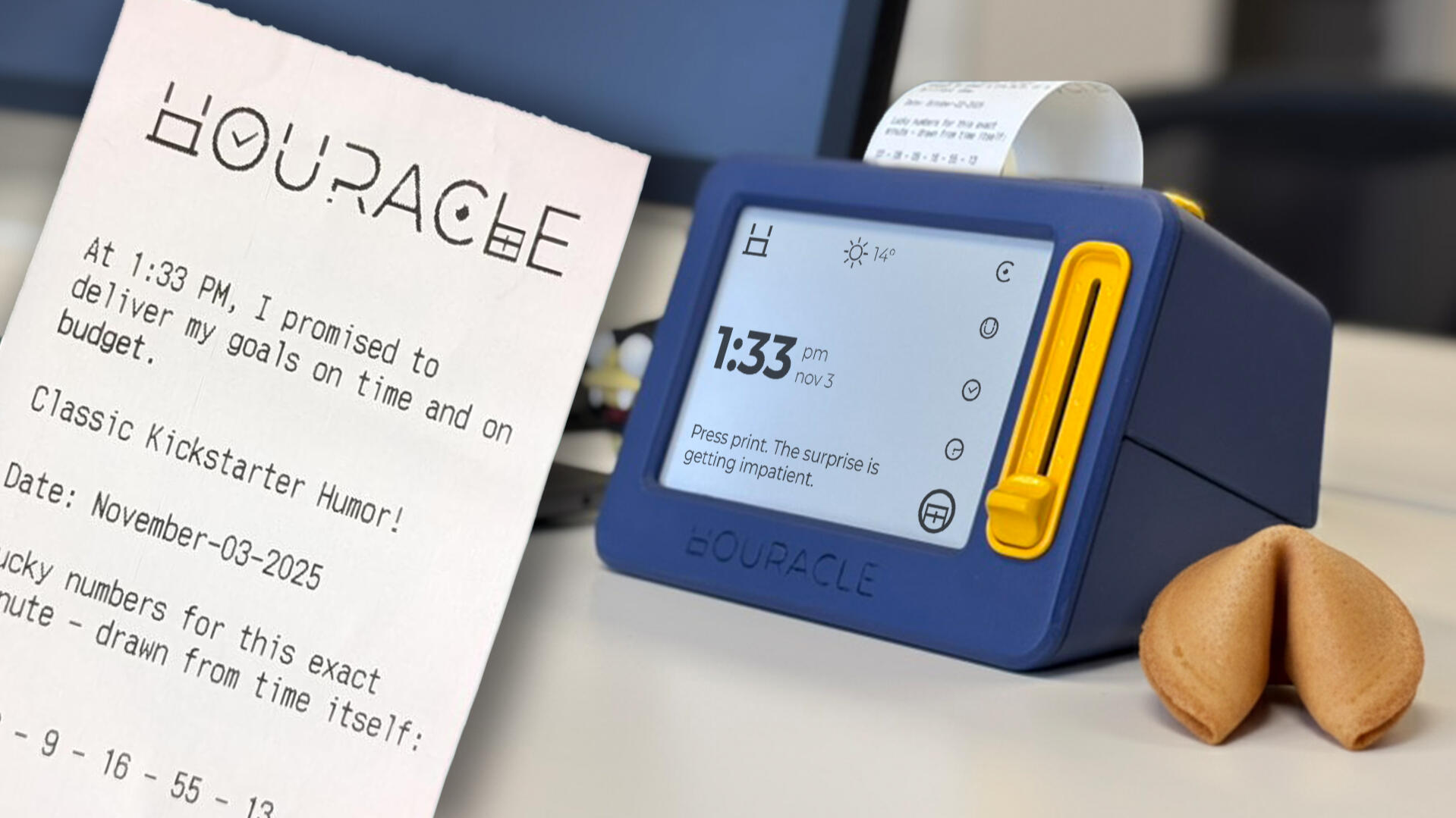 Houracle is an e-ink clock and a printer that captures the sense of anticipation once found when opening fortune cookies and baseball cards.